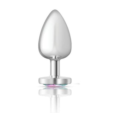Cheeky Charms Silver Round Butt Plug w Rainbow Jewel Medium