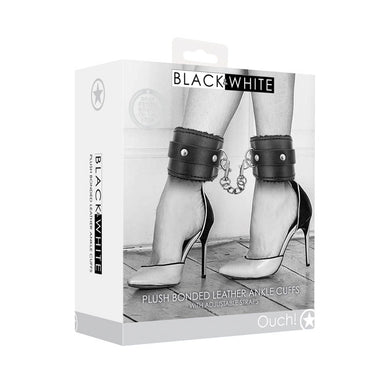 OUCH! Black & White Plush Bonded Leather Ankle Cuffs