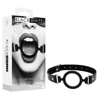 OUCH! Black & White Silicone Ball Gag with Adjustable Bonded Leather Straps