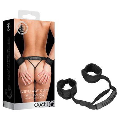 OUCH! Velvet & Velcro Adjustable Handcuffs with Handle