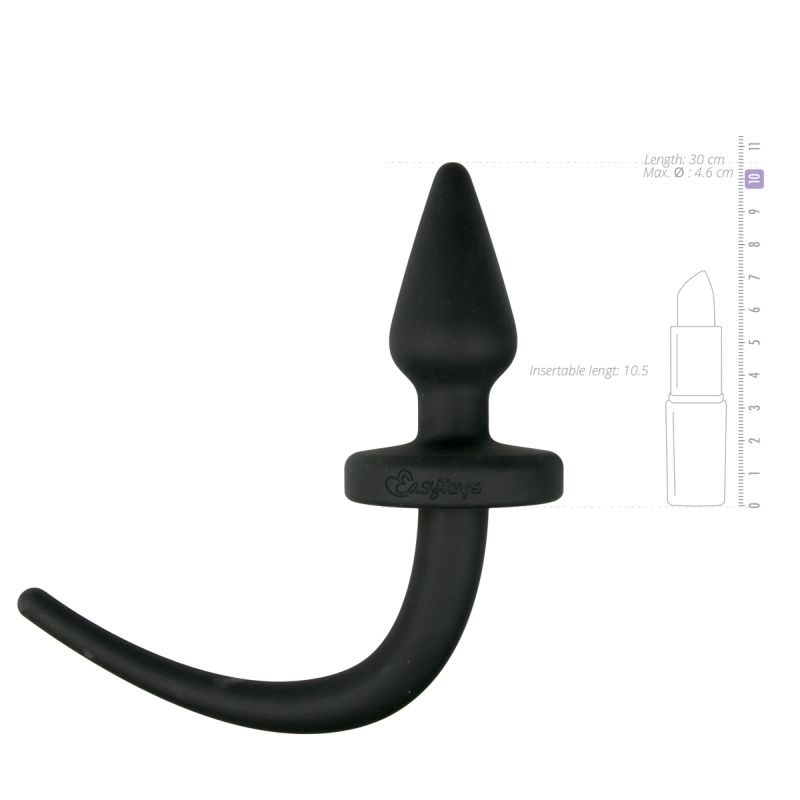 Large pointed butt plug made of silicone and with a dogs tail.