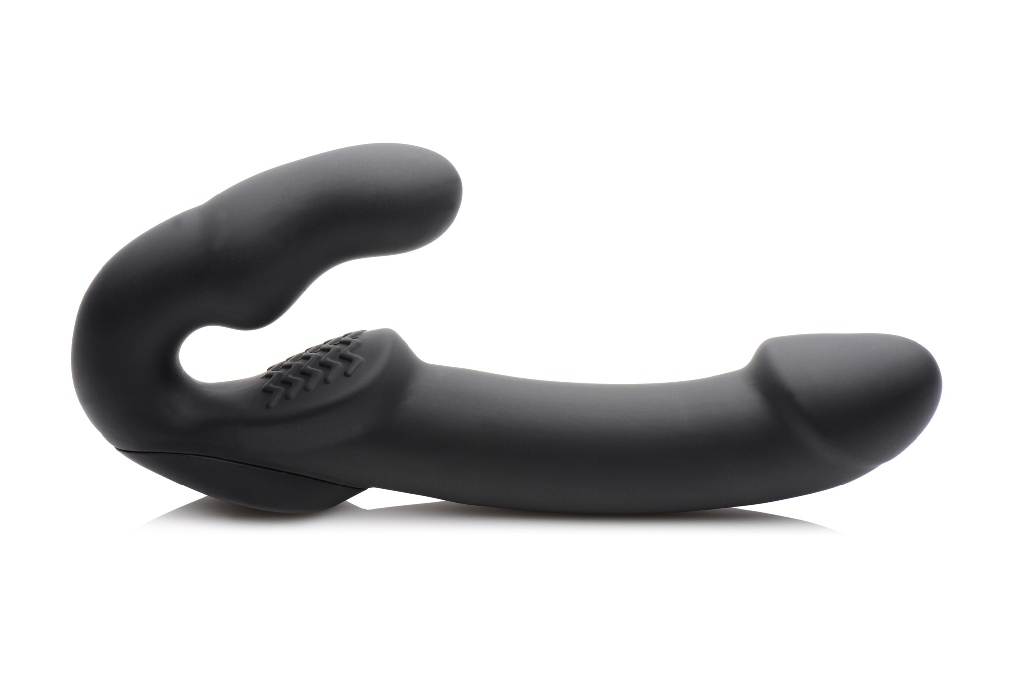 AF624-Pink Ensure the satisfaction of both you and your lover with an elegant strapless strap-on that vibrates! This rechargeable pleasure tool features dual motors with independent control so that you can each take your pick of the 3 speeds and 5 functions of powerful internal thrumming. Both ends of this artfully designed double dildo are shaped for the ultimate in ecstasy: the bulb curves towards your G-spot to pinpoint pressure while you grind your clit against bold grooves. Meanwhile your partner will be treated to a smooth shaft with a protruding mushroom tip. It is even waterproof so that you can take your play into the shower, bath, pool, and more! Explore greater intimacy with a vibrating double-ended strapon dildo. Made of silky silicone, the Evoke is non-porous and phthalate-free. Clean with mild soap and warm water and avoid use with silicone lubricants.