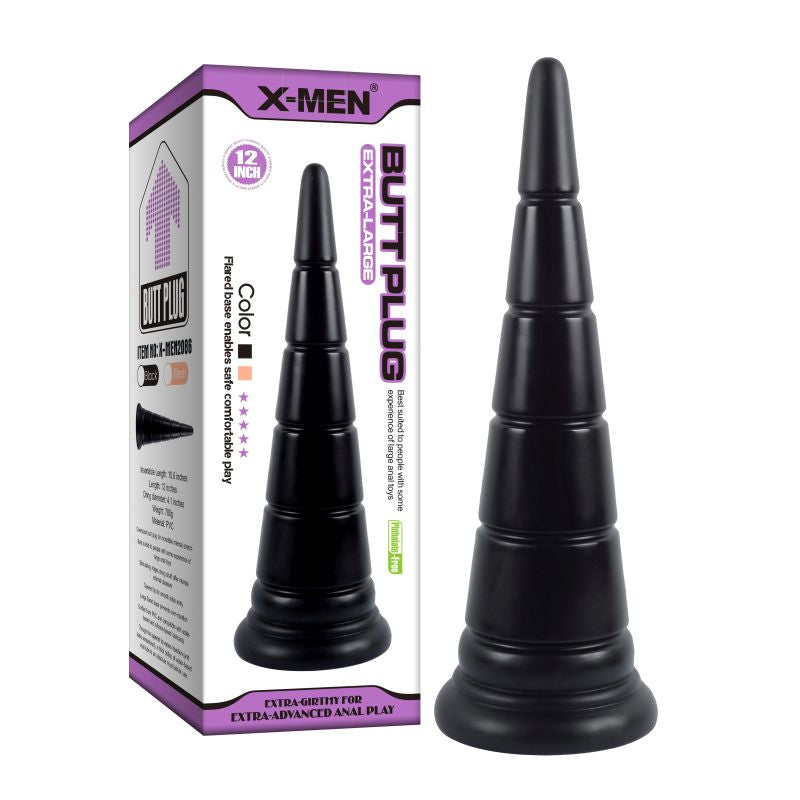 Cone shaped head on this butt plug with large ridges down both sides to increase stimulation
