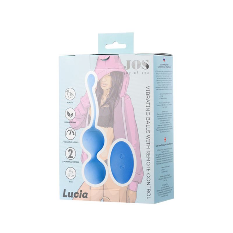 JOS Lucia Vibrating Balls w Remote Features: Colour light blue Measurements 8cm x 3.5cm Material Silicone an ABS 7 vibration functions Comes with remote control Battery 1 x CR2032