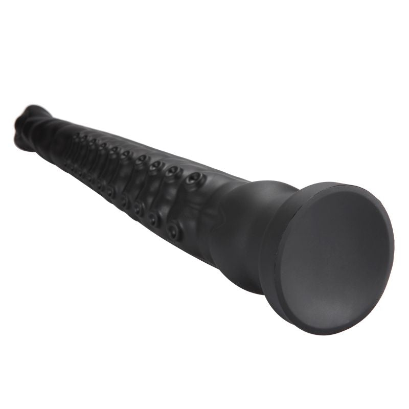 Masterful constructed tentacle dildo with small head for insertion and side suckers for added stimulation and a suction base. This unit is black in colour.