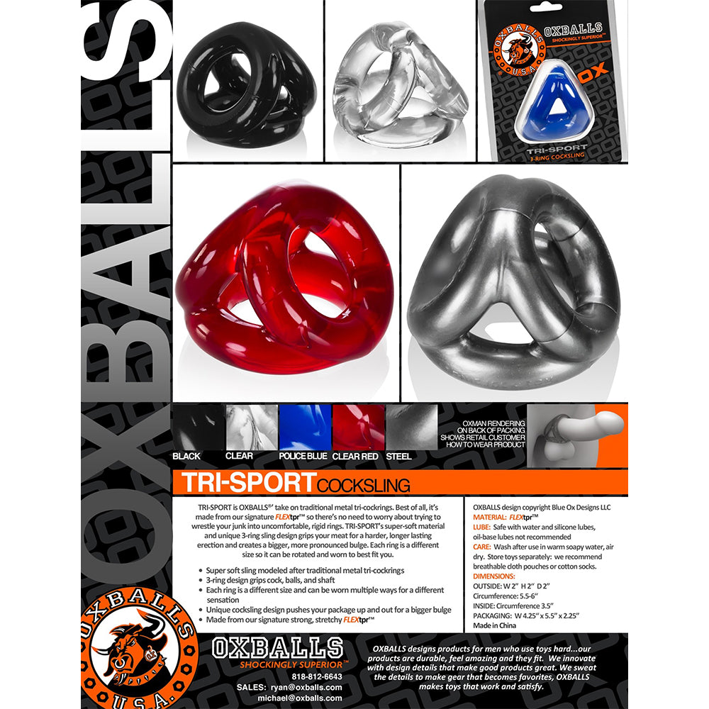 TRI-SPORT is OXBALLS take on traditional metal tri-cockrings. Best of all, it's made from our signature FLEXtpr so there's no need to worry about trying to wrestle your junk into uncomfortable, rigid rings.
