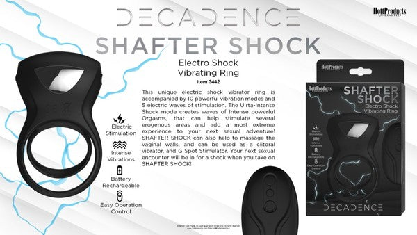 This unique electric shock vibrator ring is accompanied by 10 powerful vibration modes and 5 electric waves of stimulation. The Ulrta-Intense Shock mode creates waves of Intense powerful Orgasms, that can help stimulate several erogenous areas and add a most extreme experience to your next sexual adventure! SHAFTER SHOCK can also help to massage the vaginal walls, and can be used as a clitoral vibrator, and G Spot Stimulator. Your next sexual encounter will be in for a shock when you take on SHAFTER SHOCK!