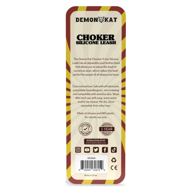 The Demon Kat Choker Silicone Leash has an adjustable push button bead that allows you to adjust the leash to numerous sizes, which makes this leash perfect for people of all shapes and sizes.