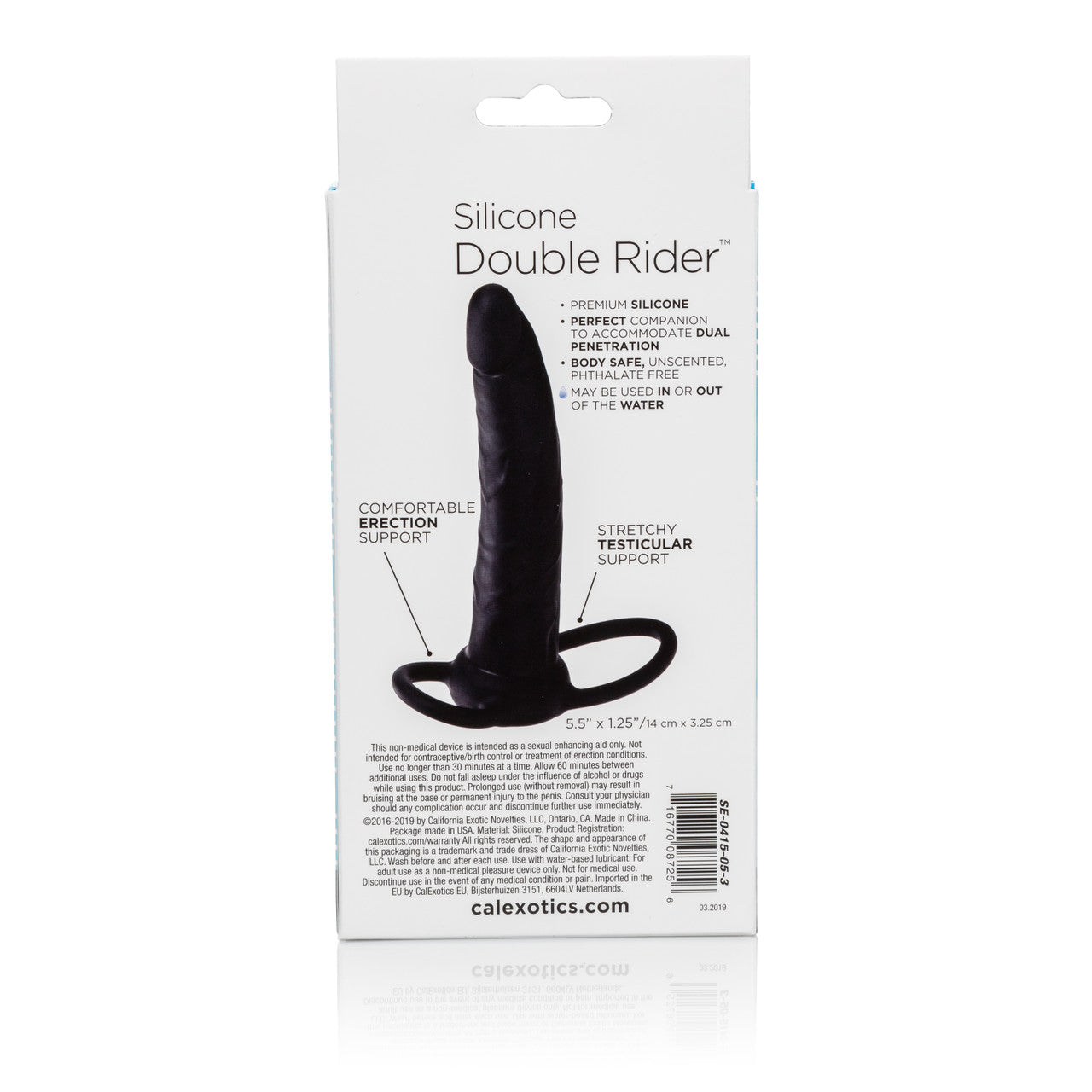 Experience mind-blowing ecstasy with the Silicone Double Rider. The exotic penis shaped dong is designed for double penetration . The stretchy, dual ring design provides testicular and erection support for extended intimacy, and a real feel fantasy threesome experience.