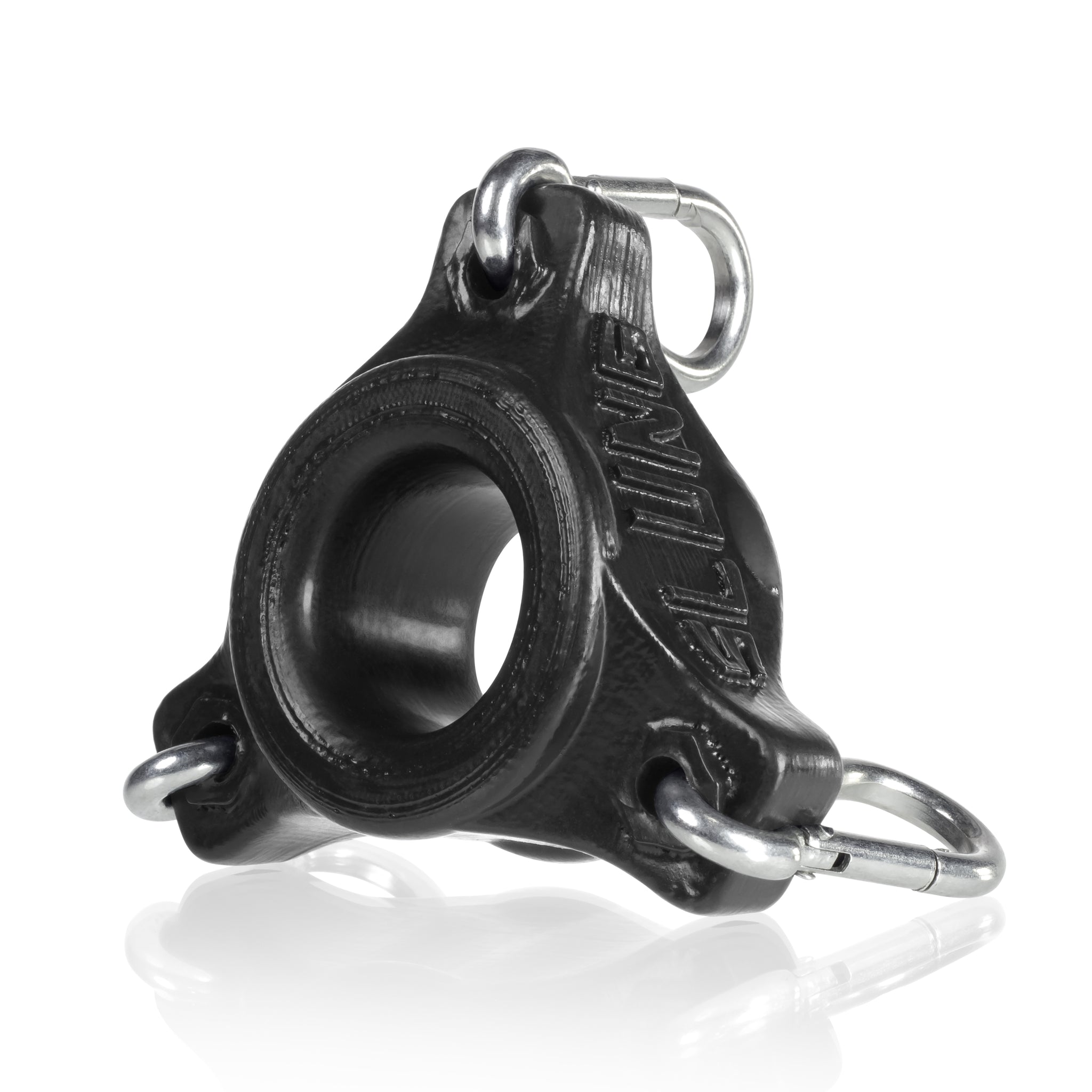 The silicone is firm but stretches to slide your balls through…we suggest a light coating of water-base lube or spit. If you already have low-hangers you can also add other ballstretchers above or below SLUNG for the ultimate amount of stretch