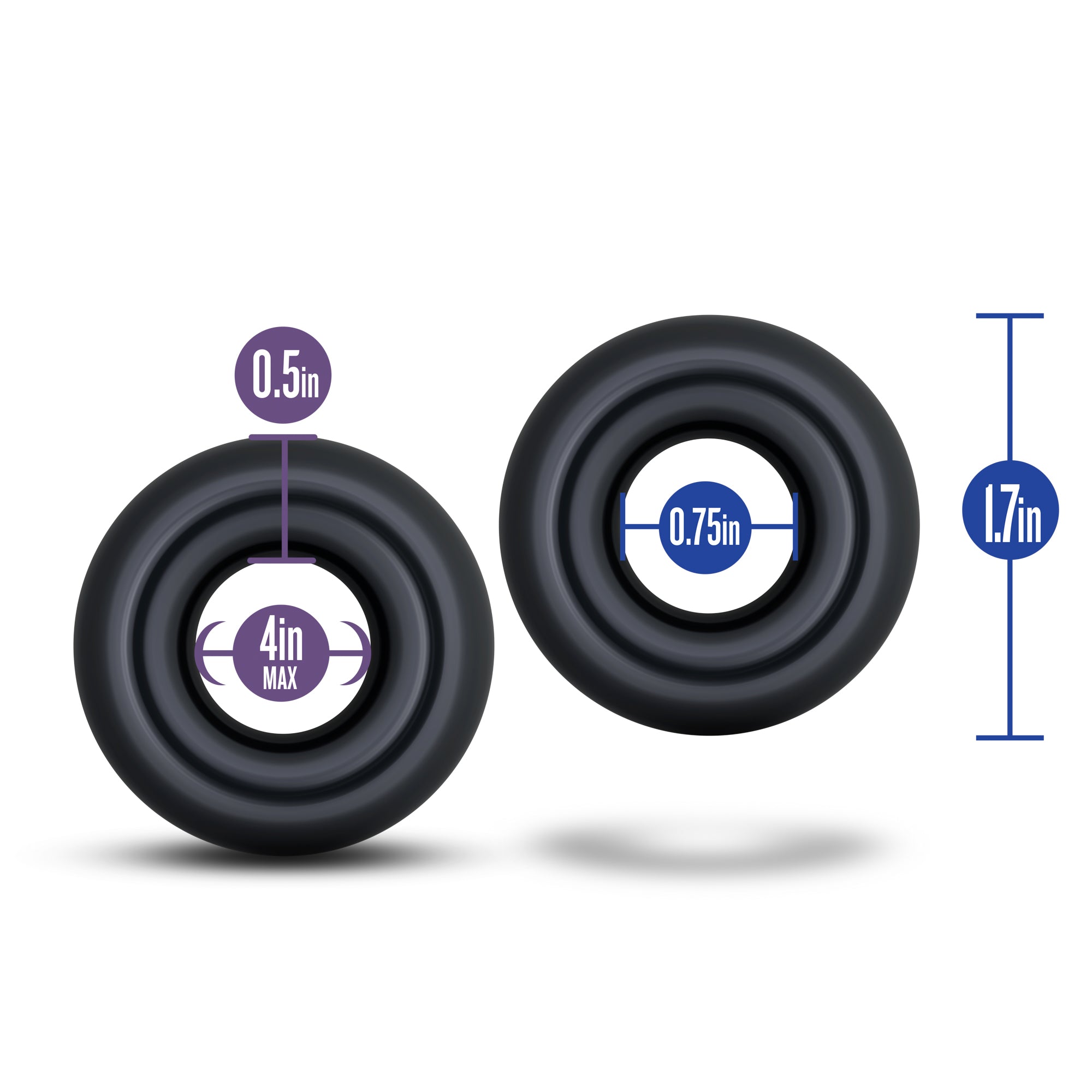 Perform like the stud you are! These Stay Hard Rings are a simple seductive add on to prolong your erection so you can prolong your sessions with your partner! Stay Hard cock rings provide amazing benefits as these can be used around the shaft or both the shaft and testicles to increase both your size and stamina. 33% thicker than our regular Donut rings so they aid in improving your stamina even more! Made from our proprietary blend of super stretchy Elastomer for your safety and hygiene during your intimate play. So pick up this Elastomer Donut Ring set by Blush tonight, you and your partner will love your bigger, harder erection that lasts longer!