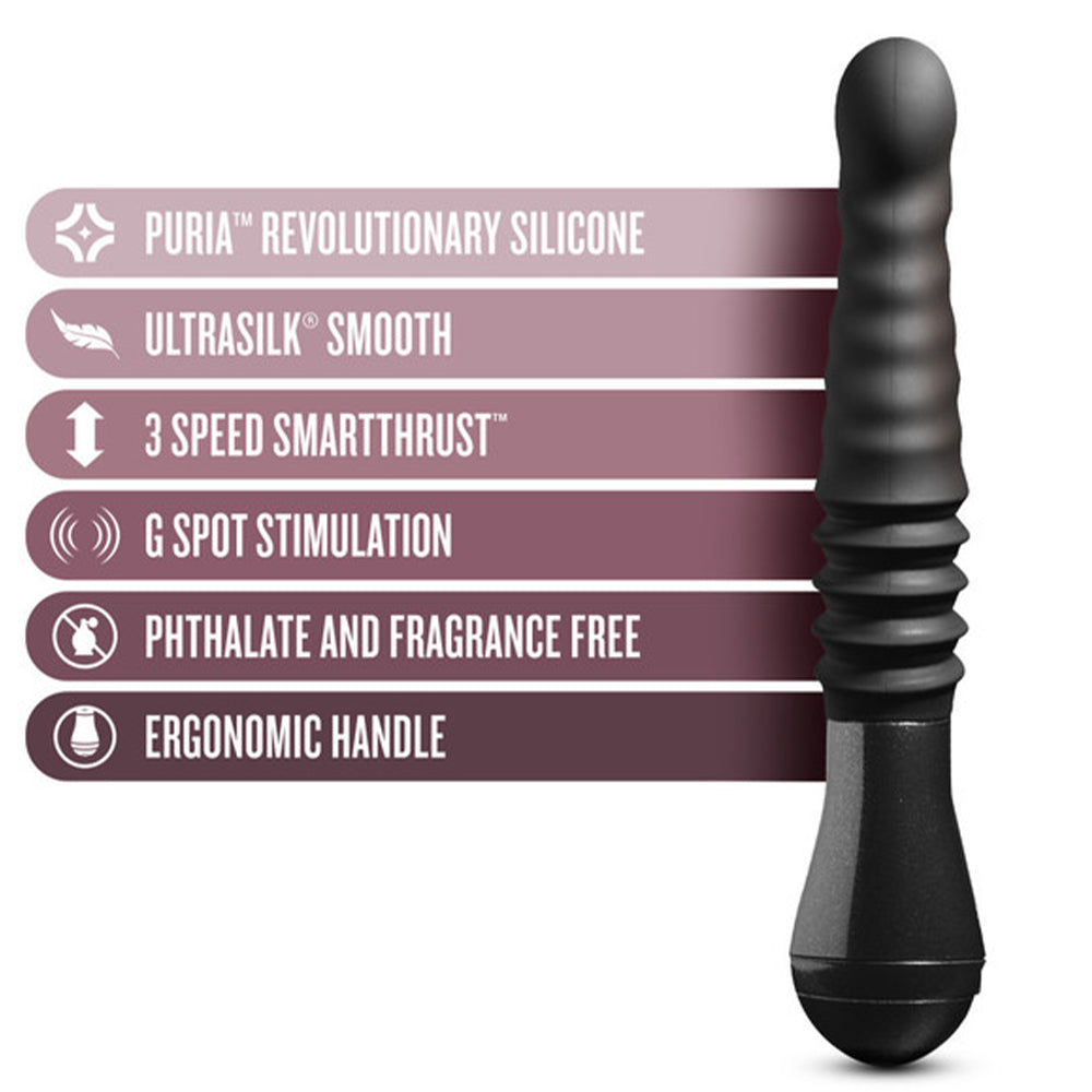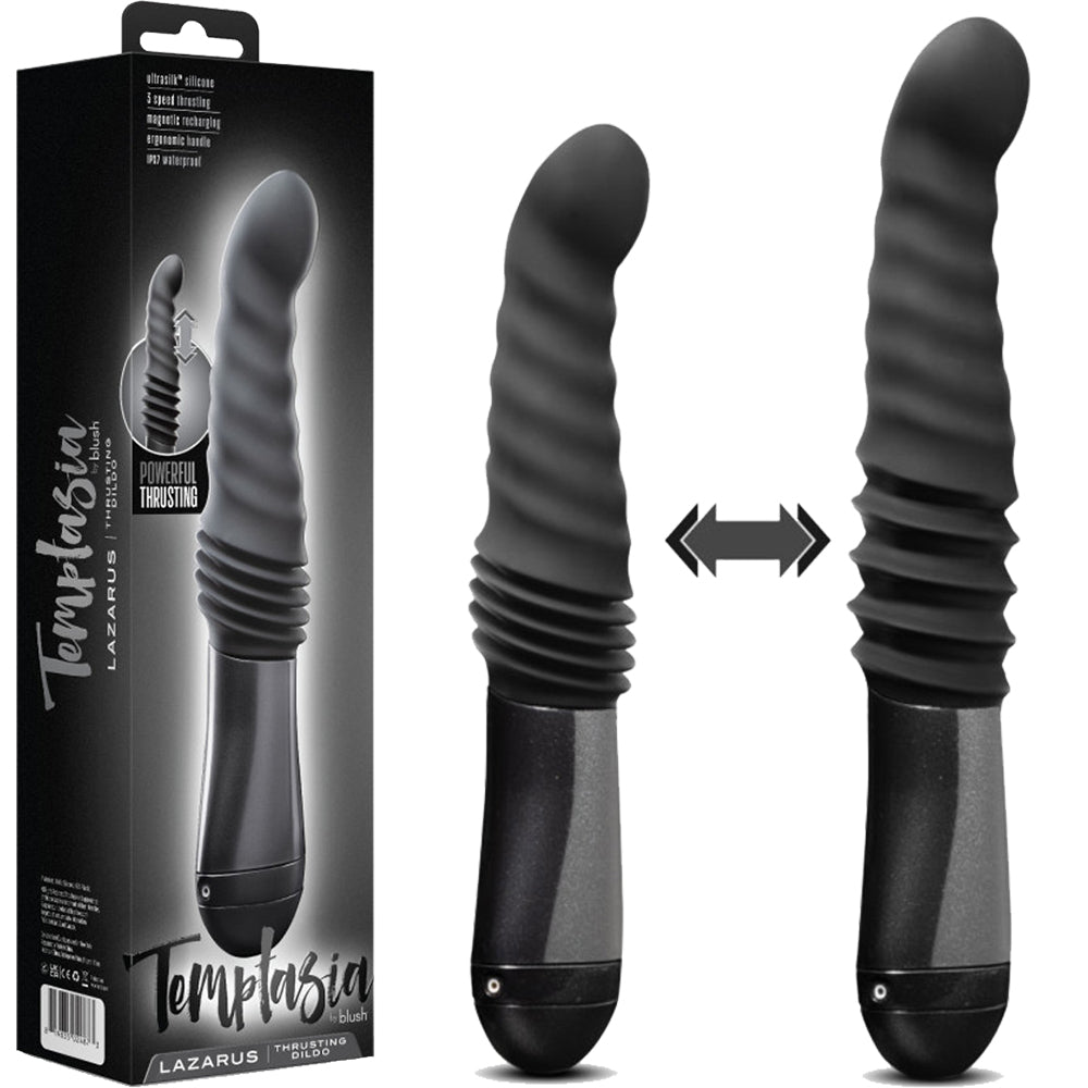 Beautiful pleasure is yours to have with the Temptasia Lazarus. This beautiful toy has 3 powerful SmartThrust tuned thrusting speeds (3 cm thrusting length). The soft curved shaft is shaped for optimal G spot and P spot stimulation! Lazarus has a long, ergonomic handle for optimal accessibility and comfort during play and a ribbed body for additional sensations during thrusting. Made of Puria™ platinum-cured silicone and Ultrasilk® smooth, Lazarus is body-safe, phthalate free, fragrance free, latex free, and easy to clean. Magnacharge USB magnetic rechargeable, Lazarus is ready to be your most loved temptation.