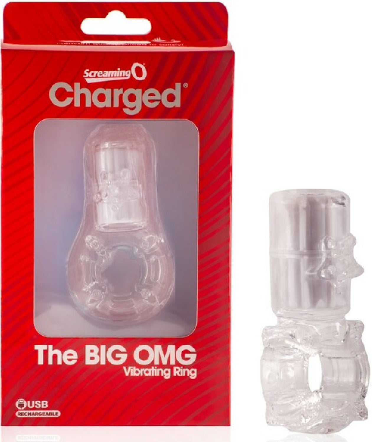 The luxurious, accessibly-priced Charged line is proud to introduce the Big OMG, a rechargeable vibrating cock ring with an innovative vertical motor for maximum clitoral contact. A thick, stretchy cock ring with a vibrating motor, The Charged Big OMG® provides strong clitoral stimulation making it the perfect entry-level rechargeable vibe ring. With a single charge from the included USB cable, the Big OMG motor can stimulate at three speeds plus pulsation for over 60 minutes of mutually-pleasing playtime. Developed with lab-tested and body-safe SEBS and ABS plastic, the Charged Big OMG® is known for its comfort as well as its quieter sound, making it the perfect enhancement to your intimate moments.