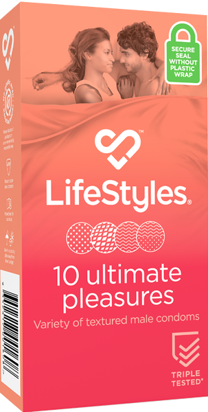 Ultimate Pleasures contain a variety of textured condoms designed to enhance stimulation and pleasure.