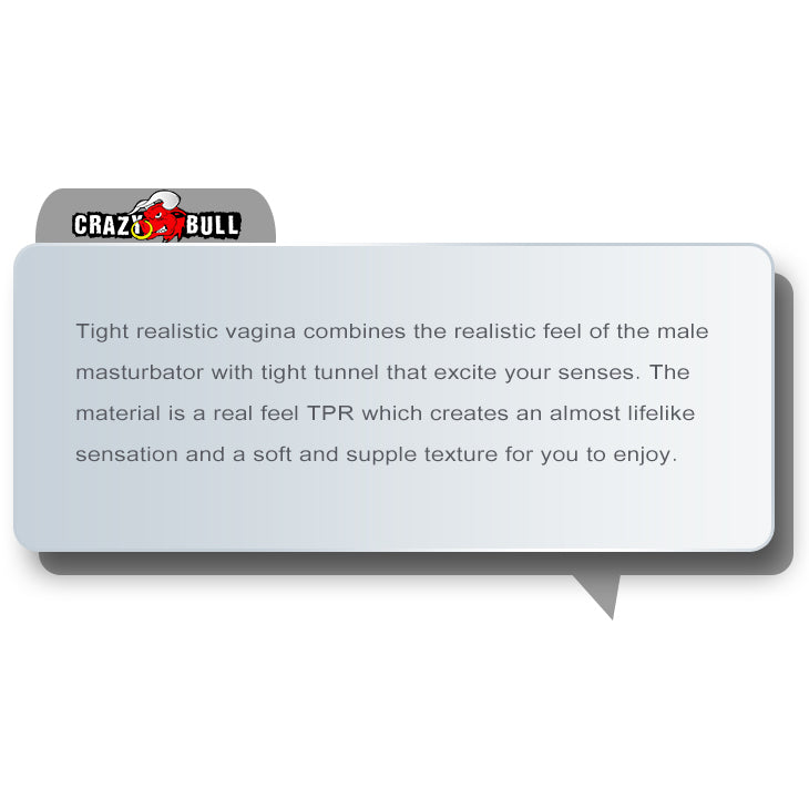 Tight realistic vagina combines the realistic feel of the male masturbator with tight tunnel that excite your senses. The material is a real feel TPR which creates an almost lifelike sensation and a soft and supple texture for you to enjoy.
