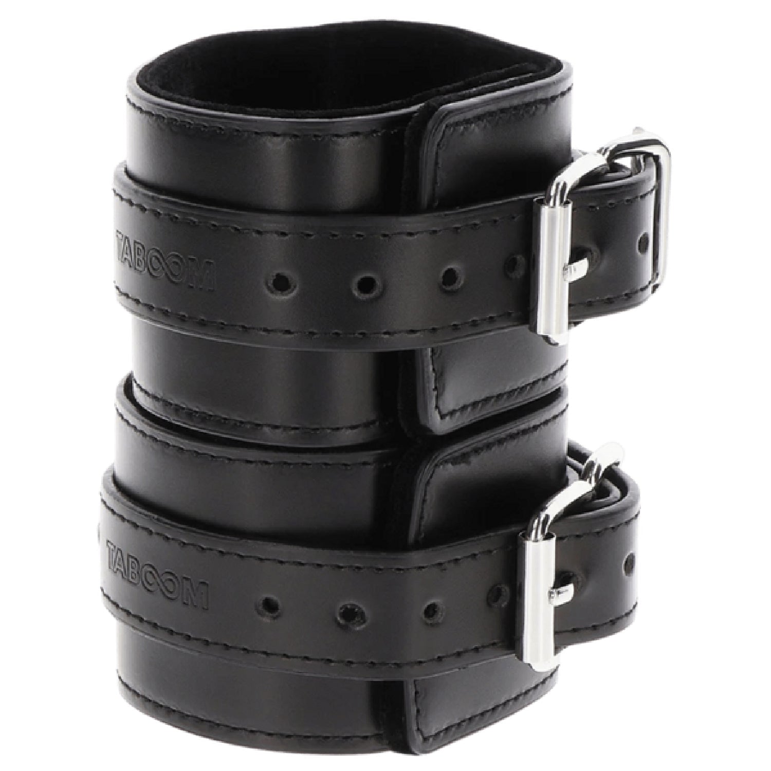 The high-quality adjustable TABOOM Wrist Cuffs are practical and strong. Enjoy a good bondage session or wear it as a sexy accessory. The firm and secure cuffs are lined with luxurious velvet to avoid skin irritation, making them comfortable to wear. These Vegan Leather TABOOM WRIST CUFFS won’t give in, due to the solid clips and D-rings, which can be used for tying the cuffs together or to the bedposts.
