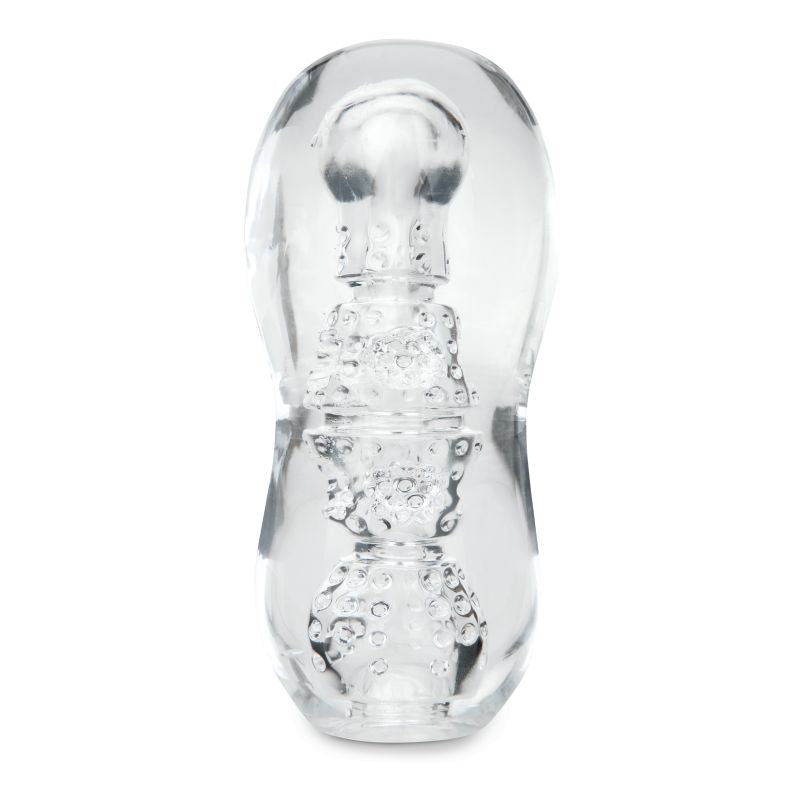 The Dotted is a flexible textured sleeve that provides intense stimulations using its unique dotted interior shape, and fits perfectly in your hand thanks to the ergonomic design. Made from clear phthalate free materials that are body safe.